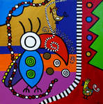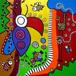 Serie Paradise van Bianca Leusink. Dieren, vogels en vissen met vrolijke kleuren gecombineerd met verrassende vormen. Alle schilderijen worden geleverd inclusief certificaat van echtheid.